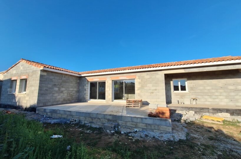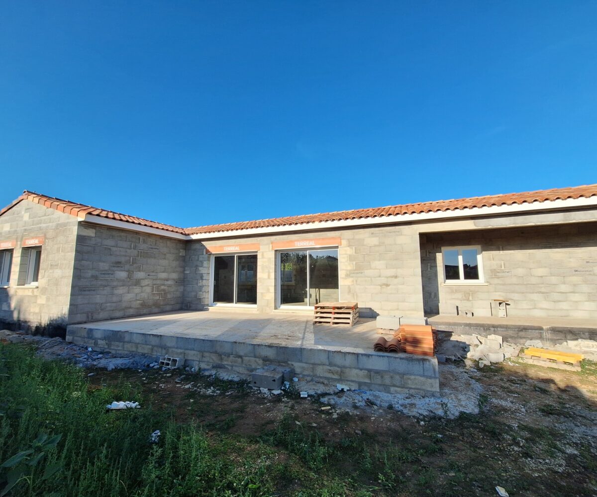 A 5 mns de La Rochefoucauld, au calme , pavillon de plain pied en cours de construction – 102 m² + le garage attenant 20 m² – terrasse 47 m² –