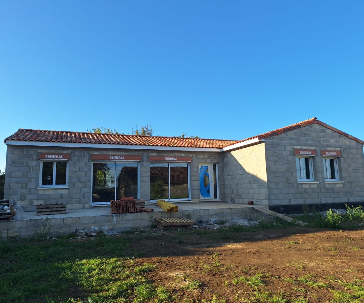 A 5 mns de La Rochefoucauld, au calme , pavillon de plain pied en cours de construction – 115 m² + le garage attenant 20 m² – terrasse 40 m² –